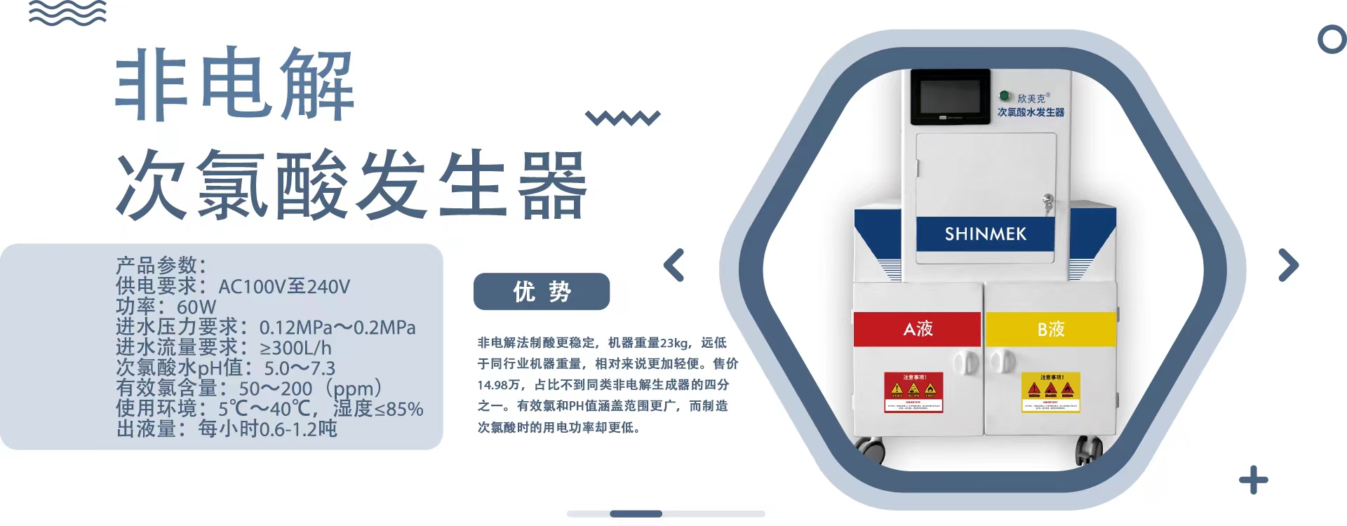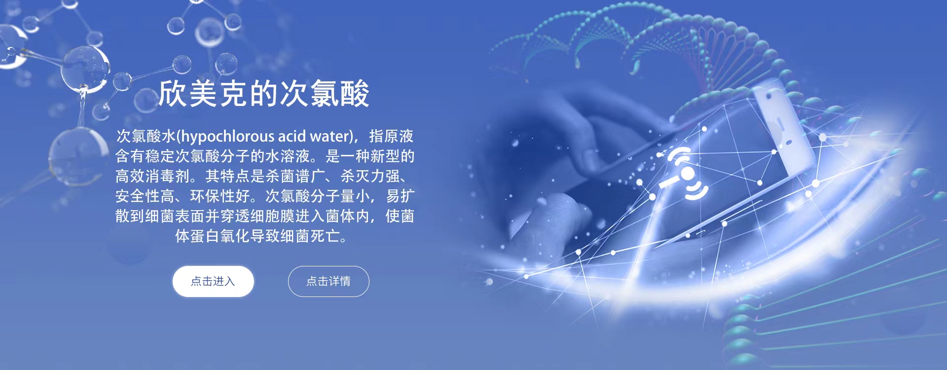 欣美克公司與日本近藤技術(shù)研究所合作,引進日本全新專利技術(shù)(非電解微酸性次氯酸水生成工藝),創(chuàng)新研發(fā)一體化消毒殺菌設(shè)備,自主開發(fā)物聯(lián)網(wǎng)智能管理系統(tǒng),為家庭、字校、醫(yī)療衛(wèi)生機構(gòu)、酒店、食品加工、農(nóng)業(yè)、畜牧業(yè)等行業(yè)提供高效的系統(tǒng)化,智能化的整體消毒方案。